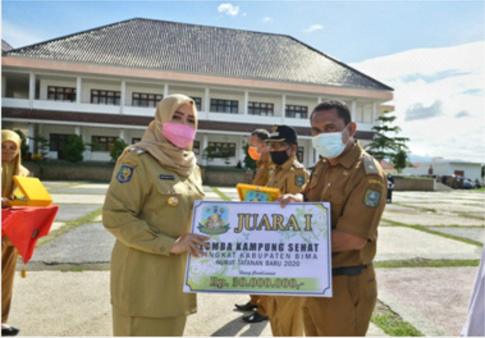 Bupati juga menyerahkan hadiah uang puluhan juta, pada tiga desa yang berhasil juara Pertama, Kedua dan Ketiga, saat mengikuti Lomba Desa Sehat tingkat Kabupaten Bima beberapa waktu lalu.